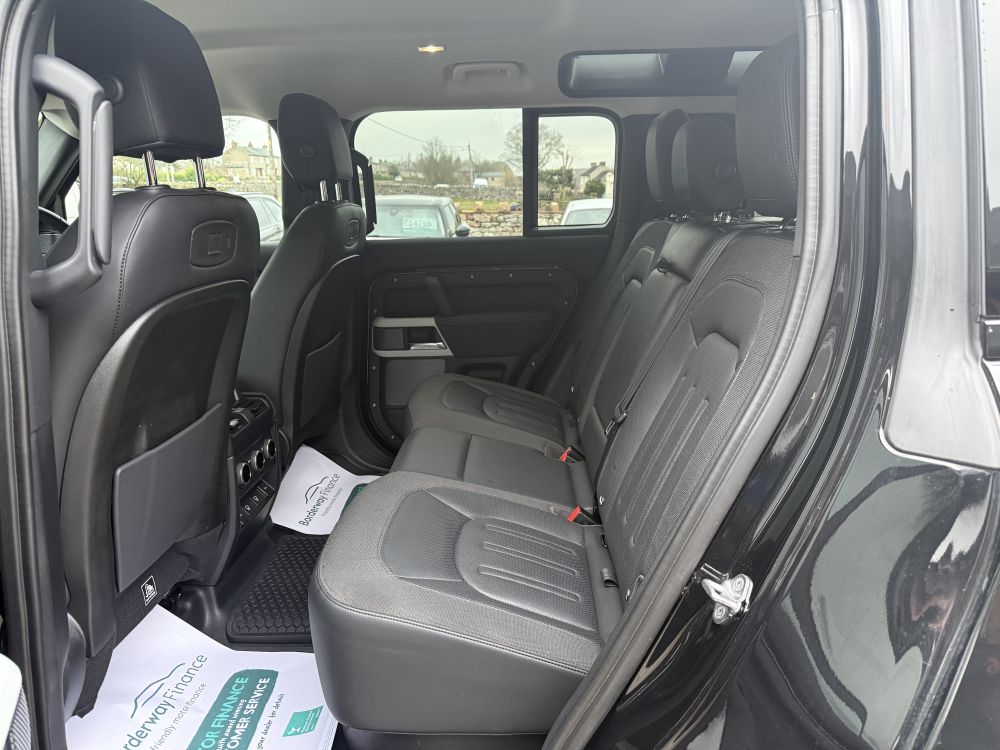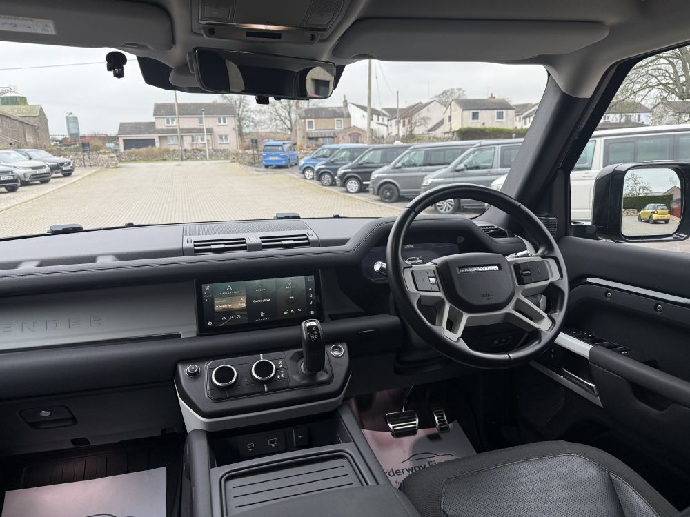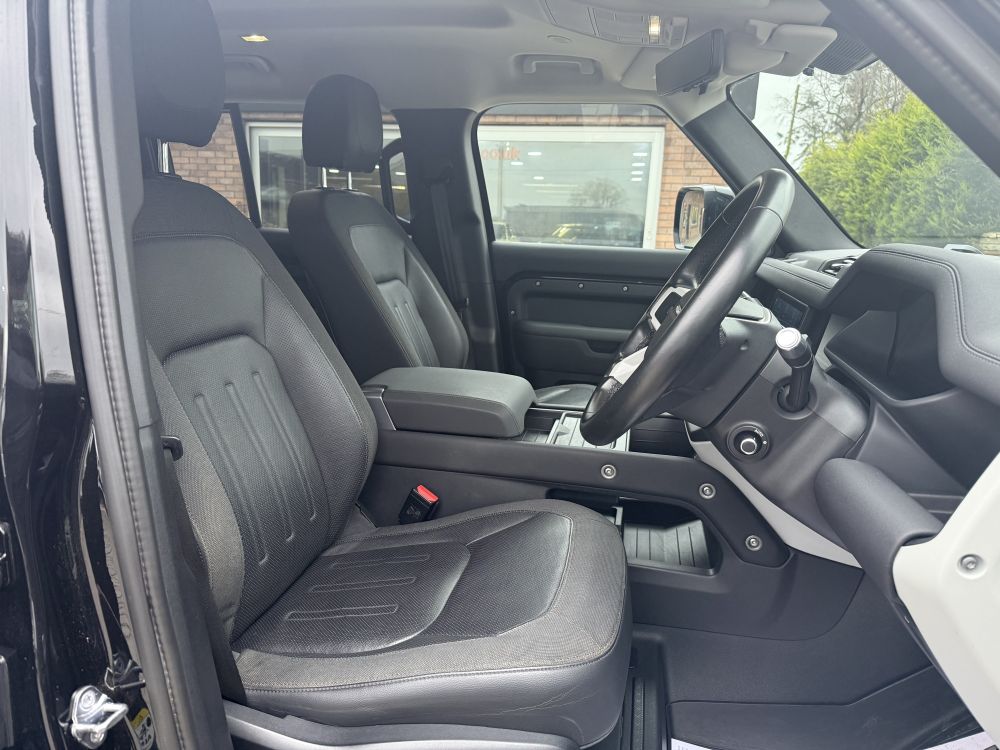 This Land Rover Defender D300 SE looks fantastic in Santorini Black with black exterior pack and presents in immaculate condition throughout having covered just 32,000 miles from new. Loaded with features including air suspension, deployable tow bar, 360 cameras, meridian sound system, apple carplay, LED headlights & much more. Sourced from a local previous owner and meticulously cared for, shown in a full Land Rover service history and the stunning condition of the vehicle. Finance options available and part exchange welcome - get in touch for more details!