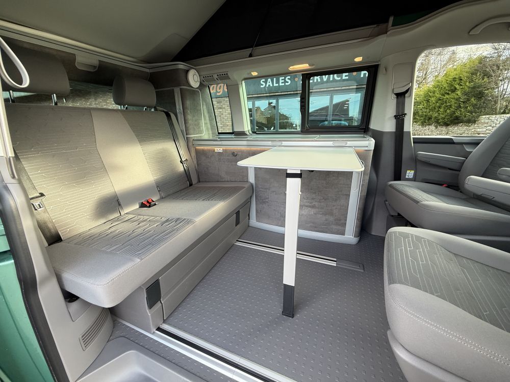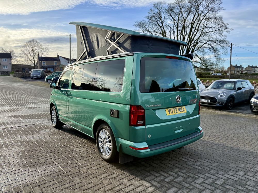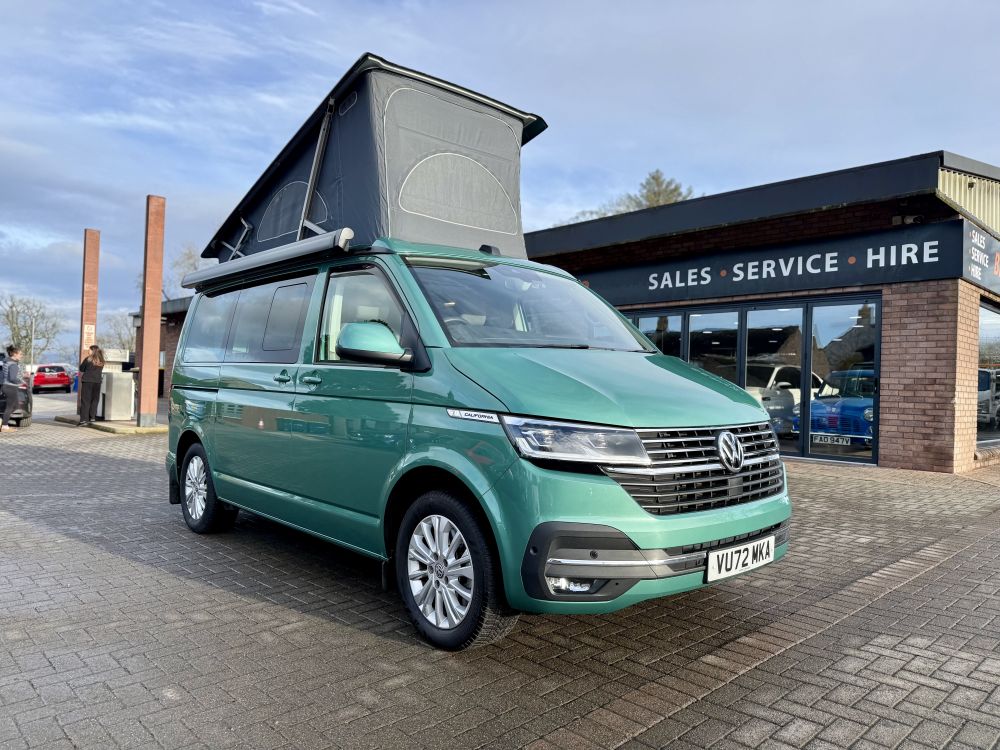 This 2022 VW California Ocean looks stunning in Bayleaf Green and comes very highly specified with optional extras including detachable tow bar, heated windscreen, outdoor shower, comfort mattress & more. Equipped with all usual California Ocean refinements including electric pop up roof, 2x two berth beds, night heater, twin leisure batteries, kitchen unit, touch screen control panel & more. Only 14,000 miles and one owner from new with full VW service history. Supplied freshly serviced ready for adventure! Finance options available and part exchange welcome - get in touch for more details.